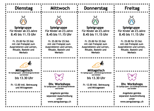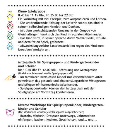 Spielgruppe ... Mittagstisch ... Workshops